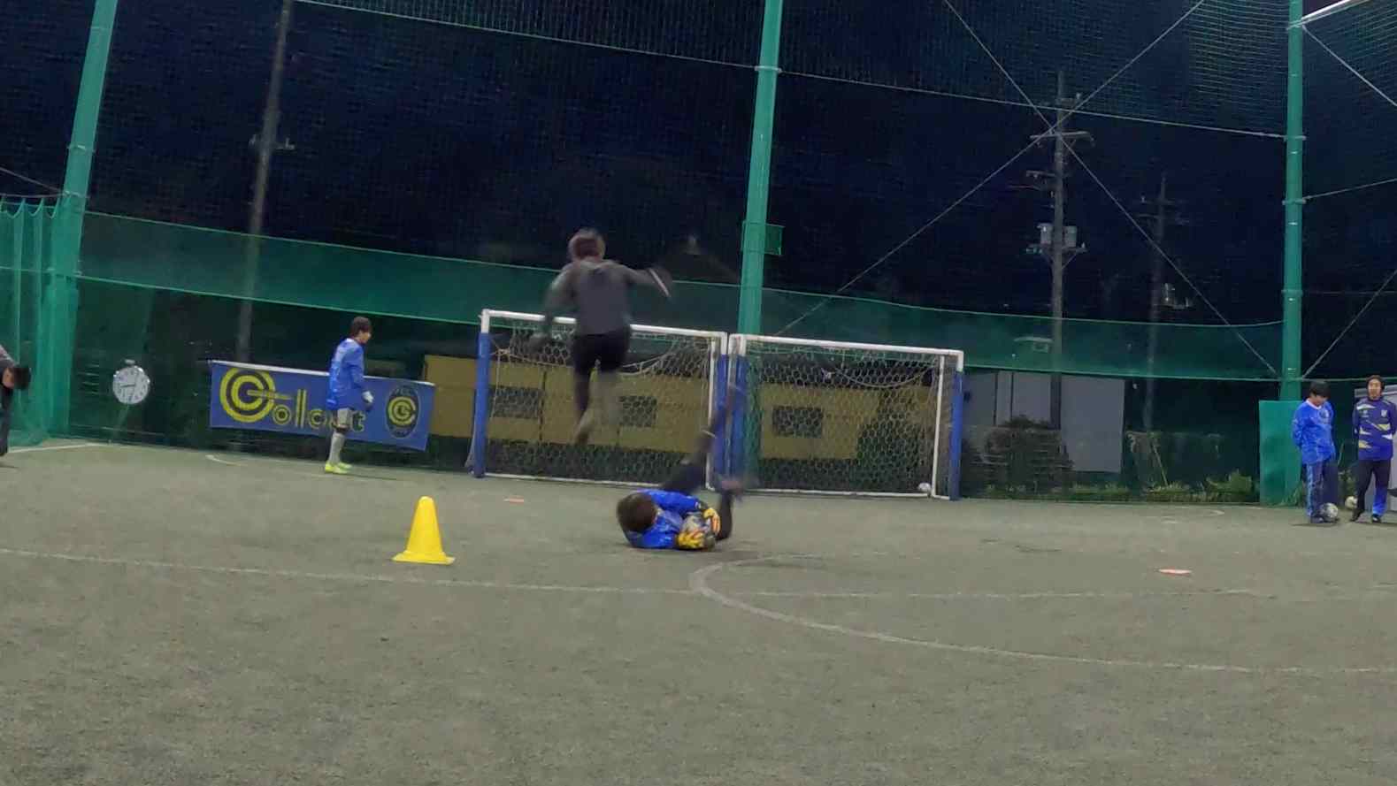 埼玉GKスクールでは、実際のペナルティエリアサイズで状況を切り取り、判断を反復する実践トレーニングまでを行います。
