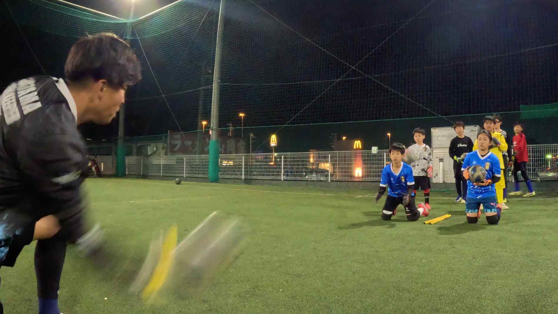スクールでは基本的に、コーチが選手一人ひとりに対してボールを配球します。